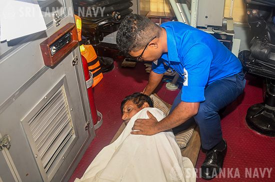 The fisherman in critical condition was safely transferred to the Fast Attack Craft on the night of 10 December and he was brought to the Trincomalee Harbour, while administering first aid. Once brought ashore, he was rushed to the Trincomalee General Hospital.