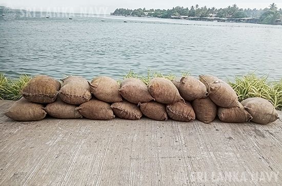 Following up on this momentum, SLNS Vijaya launched a joint operation with the Kalpitiya Police on the evening of 07 April at the Sethawadi beach. This coordinated effort led to the recovery of another 16 sacks containing a further 827kg of dried turmeric.