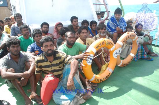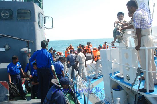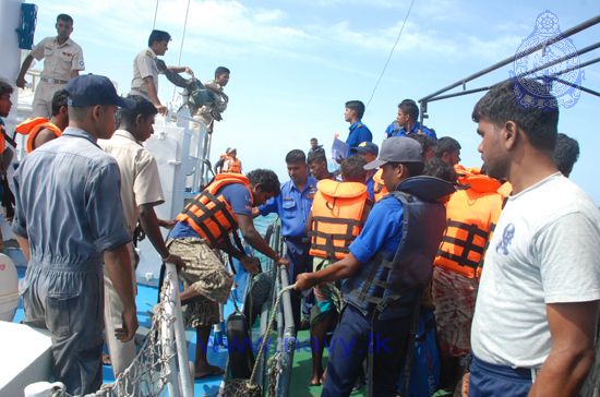 The fishermen were handed over to SLN officials by the Indian Coast Guard Ship "Rajtharang" at the Indo-Sri Lanka International Maritime Boundary Line (IMBL) in the seas North of Kankasanthurei. They were brought to the KKS Harbour by Sri Lanka Naval Ship L 820 and Sri Lanka Coast Guard Ship CG 46.