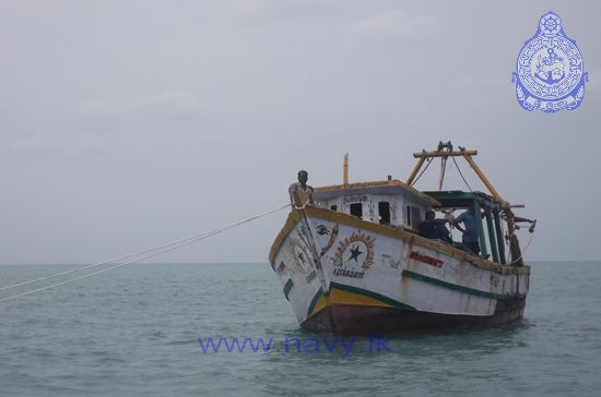 Sri Lanka Navy rescued four Indian fishermen and a trawler in distress west of Delft close to mid-night on 06th October 2014. The rescued fishermen will be handed over to Delft Police for onward action.