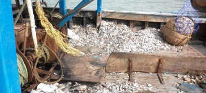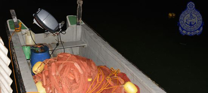 Naval troops attached to SLN Dockyard of the Eastern Naval Command arrested 08 fishermen with a FGD engaged in illegal fishing using prohibited fishing gears off round Island, Trincomalee on 30th May 2014.