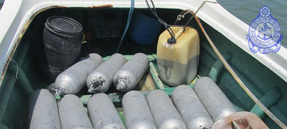 Naval personnel attached to SLNS Thambapanni of the North Western Naval Command with the assistance of Puttalam Police arrested two persons with 5 kilograms of cannabis (Kerala Ganja) in the general area of Mangalaeliya in Puttalam on 09th June 2015.