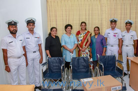 அதன் படி தற்போது கடற்படையில் பணியாற்றி வரும், சிறிய அதிகாரி எக்ஸ்எஸ் 40624 எச்.எம்.ஜே.கே ஹேரத்துடைய தந்தையின், கடற்படை வீரர் எக்ஸ்எஸ் 82853 எச்.எம்.யூ.சி குமாரவுடைய அம்மாவின் மற்றும் கடற்படை வீரர் வி.ஏ.64751 டப்.எம்.ஆர்.பி விக்கிரமசிங்கவுடைய மனைவியின் தாயின் நோய்கள் காரணமாக இந்த கடற்படை வீரர்களின் வேண்டுகோளுக்கு இணங்க சக்கர நாற்காலிகள் வழங்குதல் சேவா வனிதா பிரிவின் தலைவியின் ஆதரவின் கீழ் நடைபெற்றது.