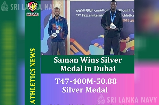 ‘Dubai 2026 World Para Athletics Grand Prix’ போட்டியில் ஆண்களுக்கான 100 மீட்டர் மற்றும் 400 மீட்டர் ஓட்டப்பந்தயங்களில் இலங்கைக்காக லீடிங் சீமன் எஸ்எம்ஏஎஸ்எம் சுபசிங்க வெள்ளிப் பதக்கங்களை வென்றார்